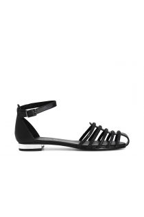 Sandali gabbia in pelle con toppone sul retro e mignon strass. cinturino alla caviglia.
