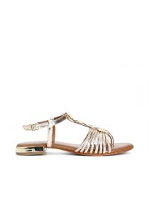 Sandali donna in pelle mignon. accessorio triangoli strass. cinturino con fibbia alla caviglia.