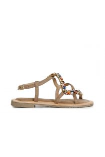 sandali in pelle scamosciata con accessorio gioiello taupe