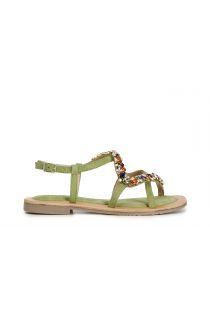 Sandali asimmetrici in pelle scamosciata con accessorio gioiello