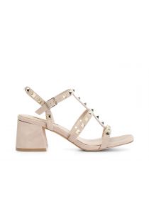 sandali in pelle scamosciata con borchie cipria
