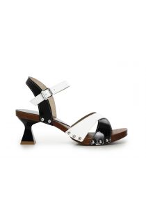 sandali in pelle verniciata bicolore con tacco a clessidra bianco/nero