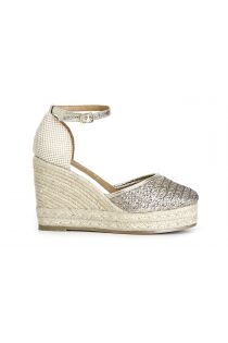 Sandali in rafia con cinturino alla caviglia e zeppa in corda