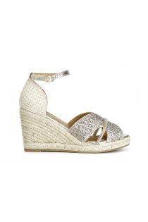 sandali in tessuto chiuse dietro e zeppa in corda platino