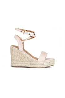 sandali in tessuto con borchie su zeppa corda cipria
