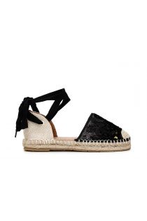 Sandali in tessuto con paillettes con alccio alla caviglia su fondo corda basso
