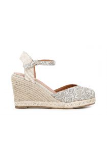 Sandali in tessuto effetto ricamato con zeppa in corda