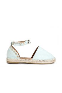 Sandali chiusi sul dietro e con cinturino alla caviglia in tessuto con borchie su fondo corda.