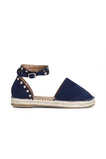 Sandali chiusi sul dietro e con cinturino alla caviglia in tessuto con borchie su fondo corda.