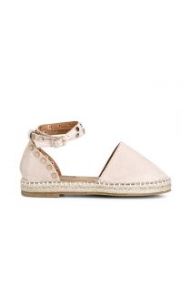 Sandali chiusi sul dietro e con cinturino alla caviglia in tessuto con borchie su fondo corda.