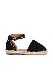 Sandali chiusi sul dietro e con cinturino alla caviglia in tessuto con borchie su fondo corda.