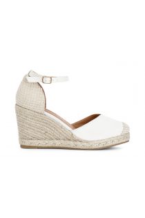 Sandali con laccio alla caviglia in tessuto su zeppa corda h. 105mm.