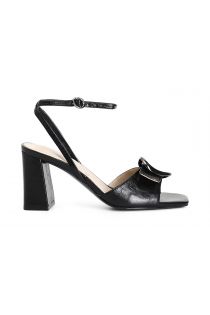 Sandali in vernice con cinturino alla caviglia e fibbia regolabile su fascia piede. tomaia fodera e soletto sono in pelle. tacco largo alto 8.5 cm. calzatura elegante con stile e formale.