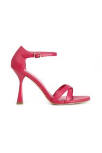 Sandali in nappa con incrocio sul davanti e toppone dietro. soletto in pelle. dalla forma stondata questa calzatura ti regalerà un tocco di eleganza e glamour. tacco a rocchetto alto 90mm.