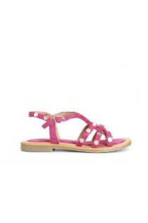 sandali incrocio in pelle scamosciata e raffia fuxia