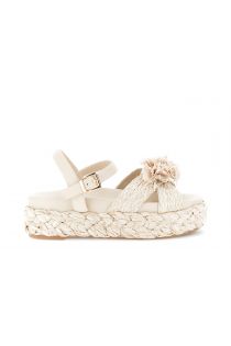 sandali incrocio su zeppa fascia raffia con fiori beige