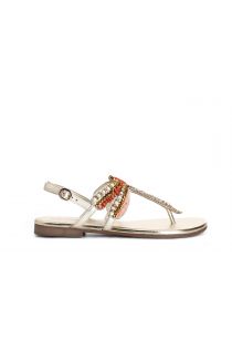Sandali infradito con applicazioni a forma di libellula. fodera e soletto sono in pelle. il tacco è alto 2 cm. comodi da indossare e facili da abbinare.