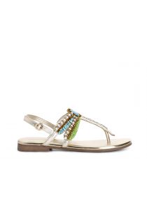 Sandali infradito con applicazioni a forma di libellula. fodera e soletto sono in pelle. il tacco è alto 2 cm. comodi da indossare e facili da abbinare.