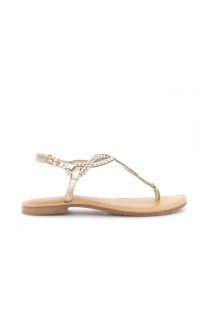 sandali infradito flat in pelle con ricamo a treccia oro
