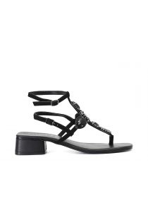 Sandali infradito in camoscio con accessorio gioiello. doppio cinturino.
