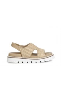 Sandalo intrecciato con scollo a "v" effetto rafia. la zeppa è alta 2.9 cm. una calzatura che unisce stile praticità e versatilità. calzature perfette per l'estata da indossare con gonne lunghe e ampie.