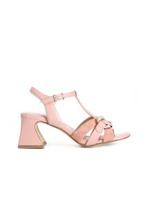 Sandali modello a "t" in camoscio e nappa con accessorio catena. calzatura che può essere indossata tutto il giorno grazie al tacco a base larga alto 55mm e alla comoda base d'appoggio.