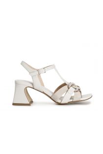 Sandali modello a "t" in camoscio e nappa con accessorio catena. calzatura che può essere indossata tutto il giorno grazie al tacco a base larga alto 55mm e alla comoda base d'appoggio.