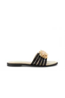 sandali modello ciabatta listini in pelle con accessorio rafia nero