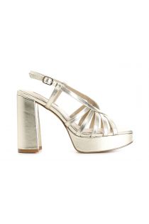Sandali a gabbia in pelle metallizzata. soletto in pelle. plateau alto 30 mm e tacco di 110 mm.