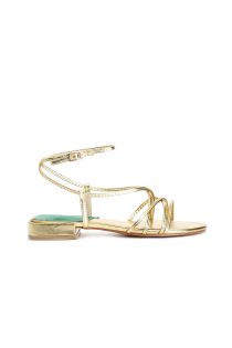Sandali con multilistini effetto laminato con laccio alla schiava. comodo soletto imbottito per una calzata morbida. tacco alto 20mm. comodi da indossare e facili da abbinare.