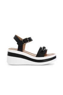 Sandali in nappa con accessorio strass. comoda e ampia zeppa con soletto imbottito fasciato in nappa. cinturino con fibbia regolabile alla caviglia.