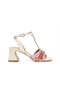 Sandali t in pelle e pelle scamosciata bicolor con morsetto. tacco h. 70mm