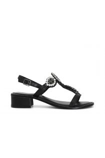 Sandalo a t in pelle con accessorio gioiello tacco h. 35mm