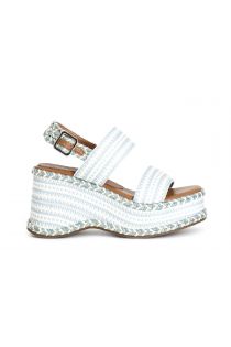 sandali zeppa doppia fascia in tessuto bianco/celeste