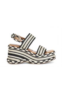 sandali zeppa doppia fascia in tessuto nero beige
