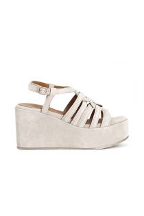 Sandali zeppa a gabbia in pelle scamosciata. il soletto è in pelle. la zeppa è alta 9.5 cm. calzatura che ti farà sentire a proprio agio ogni giorno. senza rinunciare al proprio stile.