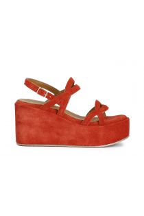 Sandali zeppa in pelle scamosciata con due fasce. il soletto è in pelle. la zeppa è alta 9.5 cm. calzatura che ti farà sentire a proprio agio ogni giorno. senza rinunciare al proprio stile.