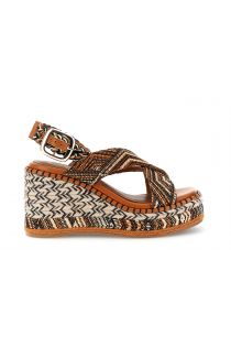 sandali con incrocio in tessuto su zeppa fasciata multi cuoio