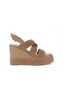 Sandali con zeppa effetto pelle intrecciata. calzatura dotata di fasce incrociate e cinturino regolabile. fondo lavorato tacco 10.2 cm e plateau 3.3 cm per un look estivo comodo e chic.