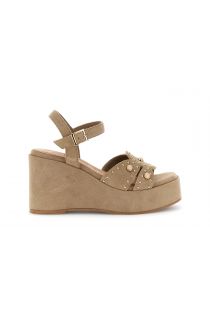 sandali gilda in camoscio su zeppa con borchie e cabochon sabbia