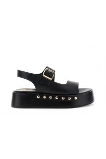 Sandali modello frate in nappa con zeppa alta 5 cm e dettagli con borchie dorate. fodera e soletto in pelle per comfort quotidiano. dal design estivo moderno e versatile ideale per look casual chic e perfetto per slanciare la silhouette.
