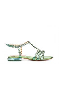 Sandali a "t" con multilistini e strass. la forma particolare del tacco rende la calzatura super chic e super glamour. comodo soletto imbottito per una calzata morbida. tacco alto 20mm. comodi da indossare e facili da abbinare.