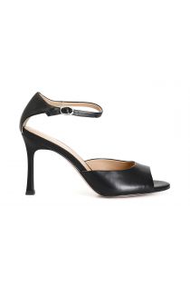 Elegante sandalo in pelle con laccio alla caviglia e toppone sul retro. fodera e comodo soletto sono in pelle. tacco alto 8.5 cm con forma affusolata. un classico senza tempo che non può mancare nel guardaroba.