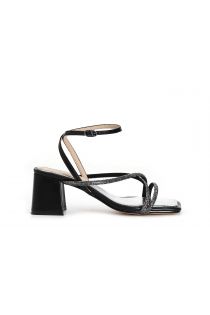 Sandali incrocio ricoperti di microstrass con laccio alla caviglia. tacco h. 65mm.
