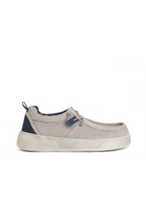Scarpe uomo allacciate con vaschetta in tessuto. il soletto è in pelle. la suola è alta h. 3 cm. questa calzatura garantisce comodità e sostegno durante la camminata il modello unisce con sobrietà comfort e stile.