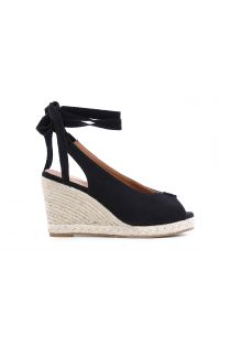 Scarpe aperte con laccio alla schiava in canvas su zeppa corda