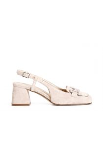 scarpe aperte sul retro in pelle scamosciata con morsetto cipria