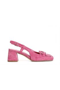 scarpe aperte sul retro in pelle scamosciata con morsetto fuxia