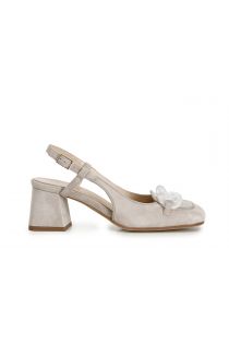 scarpe in suede realizzate in camoscio aperte sul retro con morsetto trasparente beige