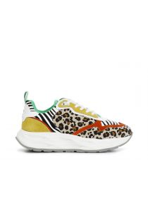 Scarpe running allacciate con riporti multi animalier in pelle scamosciata. logo embossed laterale con monogramma cafènoir. suola in gomma caratterizzata da un gioco di scavature che rendono la calzatura unica nel suo genere.